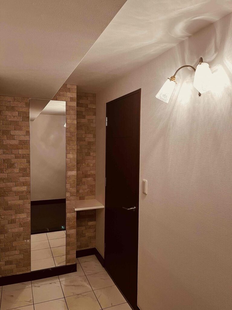 温もりのあるトラディショナルな雰囲気 入った瞬間お客様の目を引く壁の玄関照明 A20邸