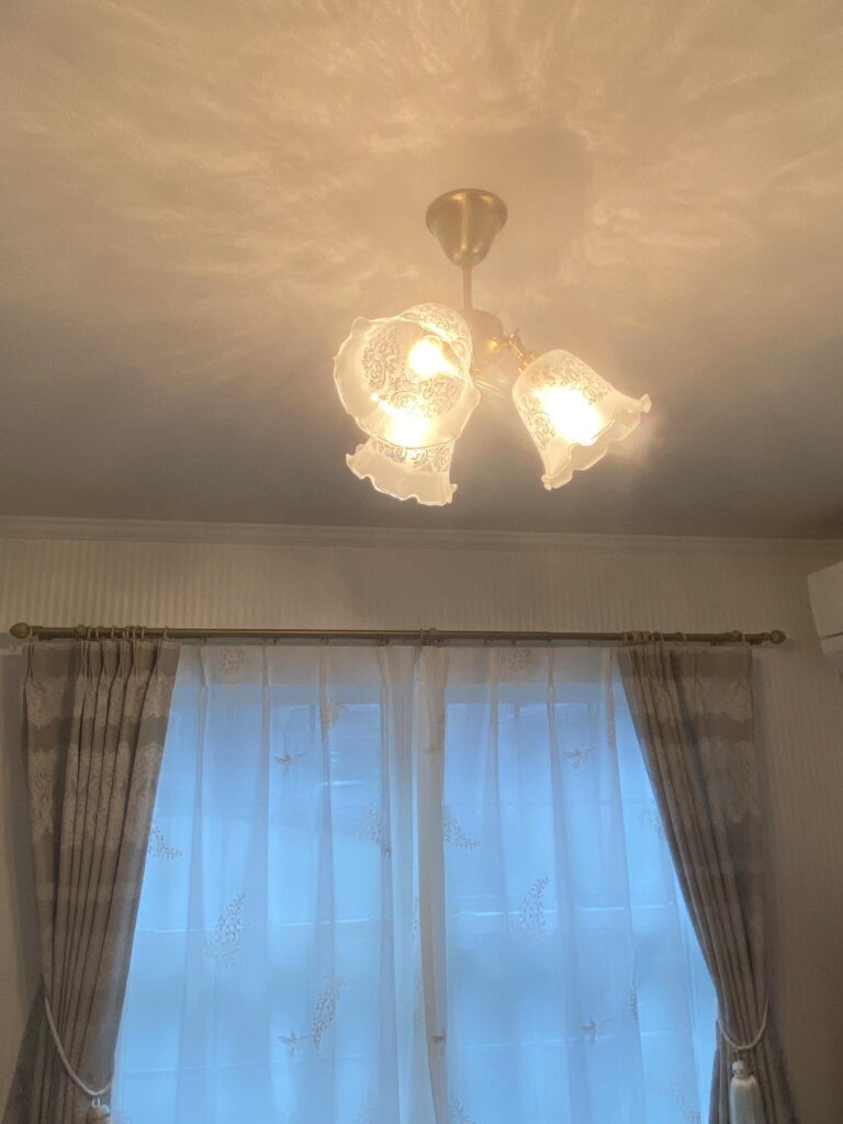 寝室にガラスシェードをみっつ使用した天井灯を設置して頂きました。